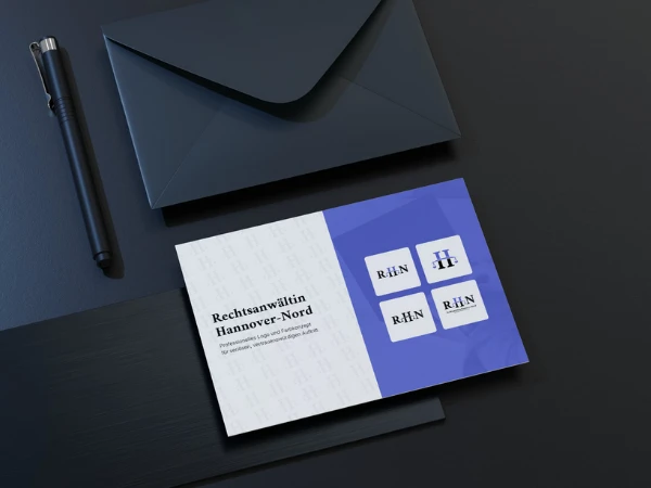 Entwicklung einer professionellen visuellen Identität mit modernem Logo-Design und durchdachter Farbpalette, die Seriosität und Vertrauen im juristischen Bereich vermittelt.
